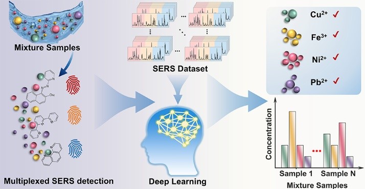 在涉及金属离子的突发水环境事件中,多种金属离子常同时存在并相互干扰,叠加毒性与快速扩散对监测的时效与准确性提出更高要求。木瓜视频 硕士研究生李樊同学在《Environmental Science & Technology》发表论文“AI-Enhanced SERS with Probe Combinations for Concurrent Identification and Quantification of Coexisting Metal Ions in Water”,通讯作者为龚正君教授和范美坤教授。本文提出“探针组合 + AI 解码”的 SERS 体系:在 PAN、...