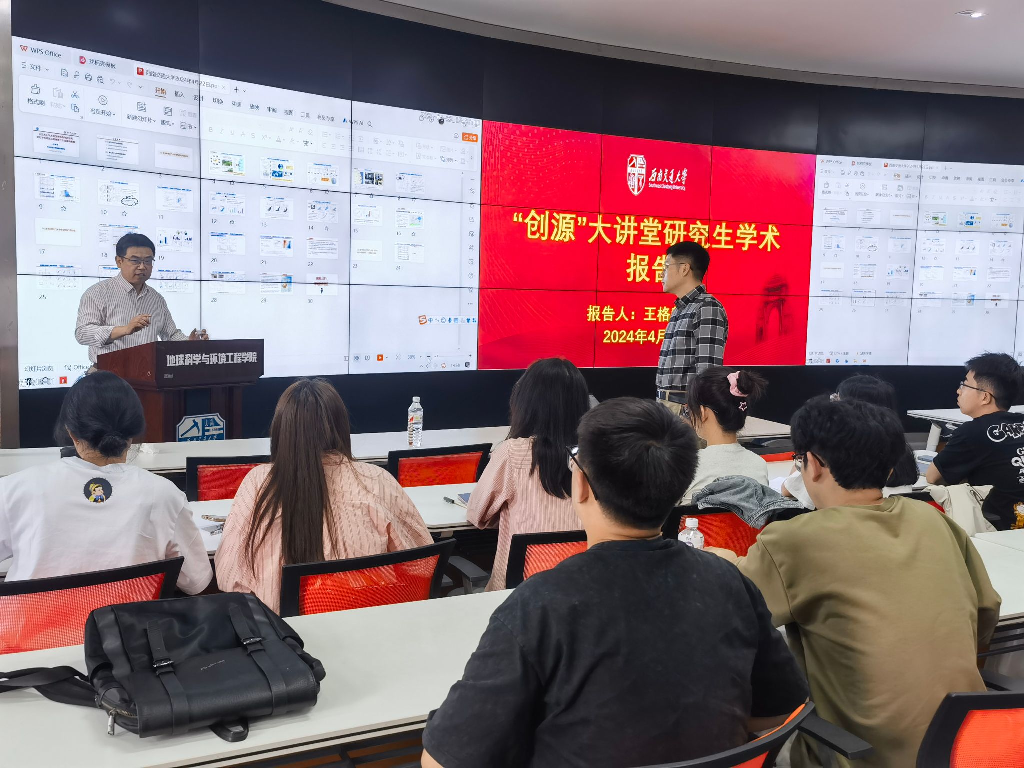 4月25日,学院在X4358组织教职工政治理论学习第二次集体学习,并召开全院教职工大会。学校原副校长姚发明受邀出席并作专题分享《实施人才强校主战略 加快建设一流教师队伍》。学院执行院长龚正君主持会议,领学《学校2024年工作要点》,并就学院重点工作进行部署。党委副书记、纪委书记胡安辉领学《教师思政和师德师风建设》相关内容。全体教职工参加大会。