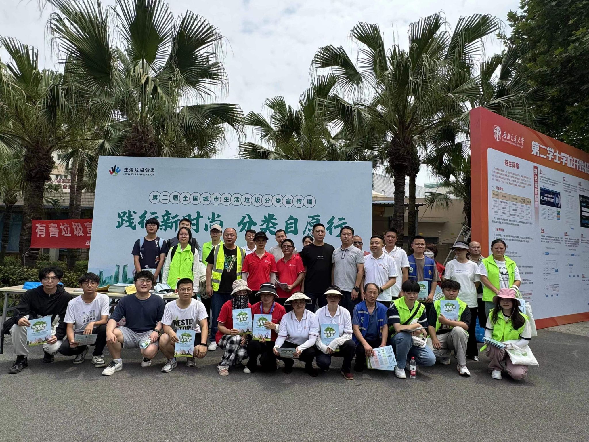宣传活动结束后,志愿者与工作人员在绘有“践行新时尚 分类自愿行” 的大型衍架前合影留念。大家纷纷表示,此次活动形式多样、内容丰富,圆满完成了宣传目的,后续大家依旧会通过海报、新媒体推送等方式持续宣传垃圾分类知识。志愿者们也表示今后要把环境人艰苦奋斗、锐意进取的精神转化为环境人环保报国的动力,在深入学习贯彻习近平生态文明思想的同时,为美丽中国建设贡献更多智慧。