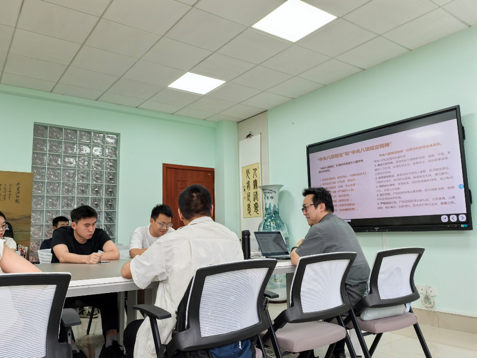 党课讲授结束后,第三党支部书记唐若愚对于此次党课内容的学习发表了自己的收获与感受,他表示在生活中我们要守住底线,要注意不能铺张浪费等。此次党课内容详实具体,甘霖书记的讲授生动细致,在场成员均深受触动,收获颇丰,对中央八项规定精神又有了更深入的认识。作为党员,我们要时刻严格要求自己,做好先锋模范作用,在推进中国式现代化中贡献青春力量。