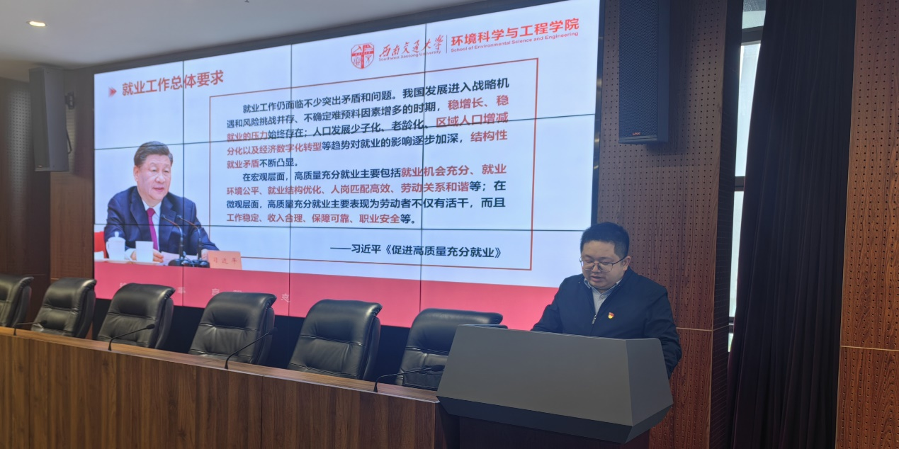 随后,胡安辉副书记领学了习近平总书记关于《促进高质量充分就业》的讲话精神,并汇报了学院目前学生就业工作的基本情况。他从就业市场的近况、学生们的就业观等方面分析了学生就业工作的难点,动员全体教师积极为学院的就业工作尽心尽力。
