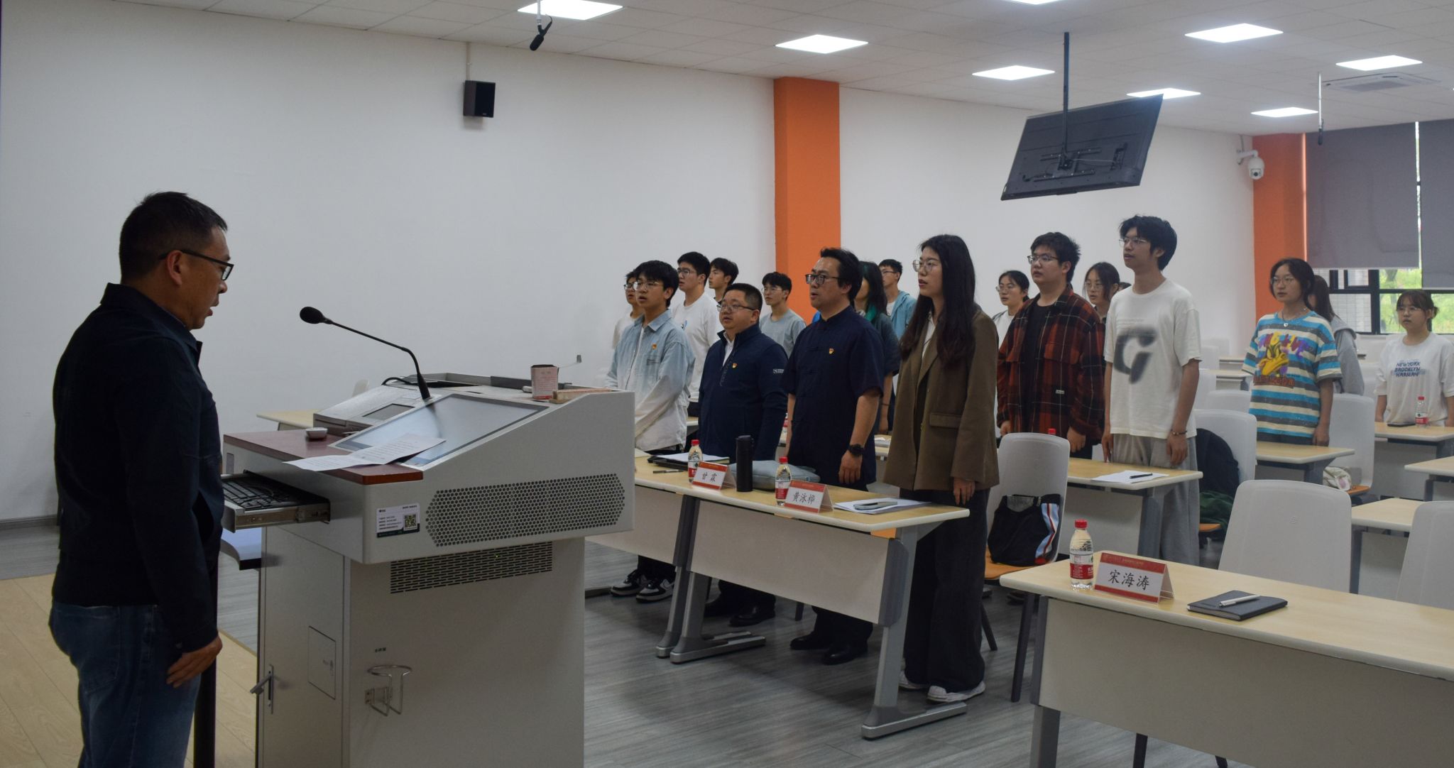 党委书记甘霖、党委副书记胡安辉,辅导员老师们和第一期积极分子培训班学员们参加开班仪式,会议由专职组织员宋海涛主持。