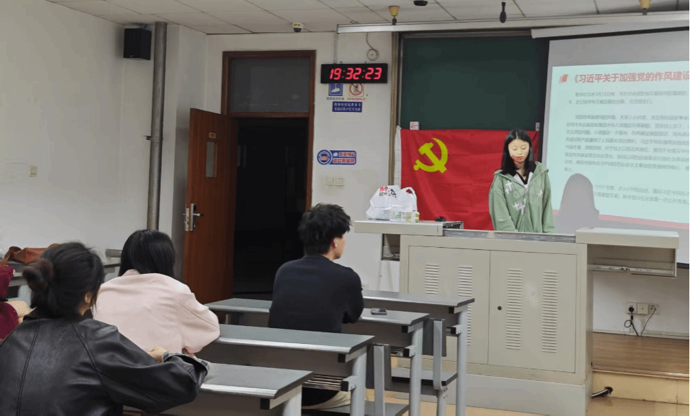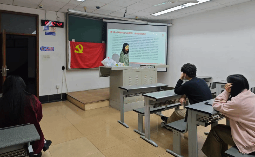 202541019:30,研24级环境第一、二党支部在J4305B联合开展4月党日活动,此次活动以深入贯彻中央八项规定精神学习教育、强化党的作风建设为核心,同时对全国两会精神及习近平总书记近期重要讲话精神进行深度研习。会议由研24级第二党支部书记刘艳霞同志主持,旨在引导全体党员深刻领悟党的理论精髓,增强党性修养,提升服务意识与担当精神。24级环境第一党支部应到党员17人,实到党员6人。