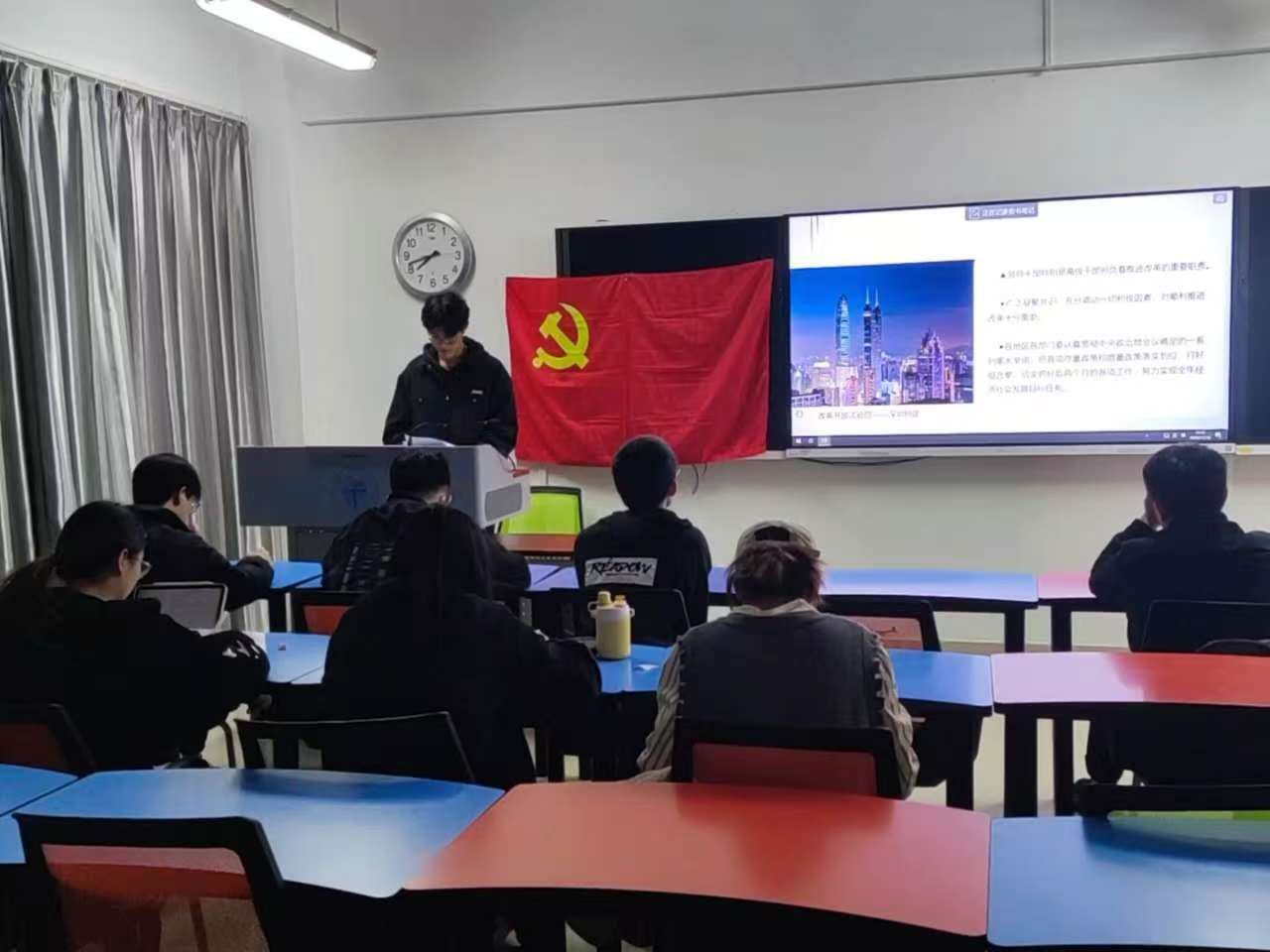 会议第一项,由党支部成员沈旭辉,刘桢志,李玟玟,杨涛四位同志对预先学习过的学习材料通过PPT进行讲解。主要解读了“守正创新”的改革原则、“改革与法治相统一”的方法论,以及“以人民为中心”深化改革的实践方向。通过细致讲解,大家对全面深化改革与推动中国式现代化发展的内在逻辑有了更加系统的认识。