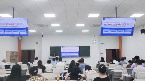 随后,甘书记进一步对党的二十届三中全会精神进行了深入解读。他通过凝练全会公报中的高频词汇,从“一个总目标”、“七个聚焦”“六个原则”的角度出发,详细阐述了推进中国式现代化的重要战略部署。结合学院工作实际,甘书记着重分析了深化生态文明体制改革、深化教育综合改革、深化科技体制改革以及深化人才发展体制机制改革等方面的内容,为学院在新时代背景下的改革与发展指明了方向。