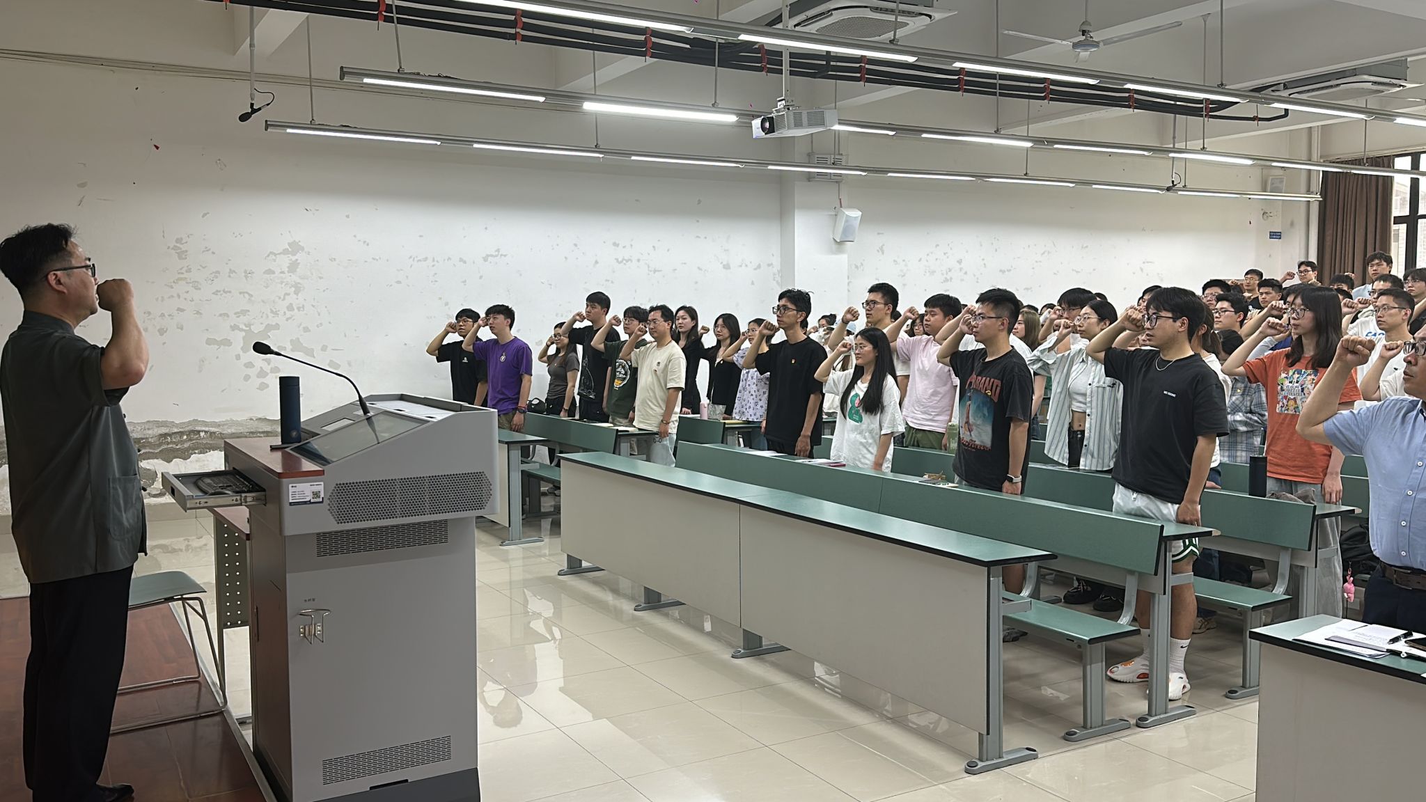 最后,全体起立,以《我宣誓》的歌声重温入党誓词,表达对党的忠诚和对革命事业的坚定信念。这次党课不仅是一次知识的传递,更是一次心灵的洗礼,同学们表示,通过此次音乐党课,更加深刻地体会到了先烈们的伟大精神和革命事业的崇高意义,也更加坚定了为共产主义事业奋斗终身的决心。