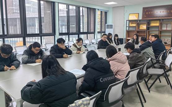 与会同志在会议第一议题中,共同学习了习近平总书记在《求是》杂志上发表的重要文章《促进高质量充分就业》,并传达了学校2024年第6次党委书记工作会议精神。