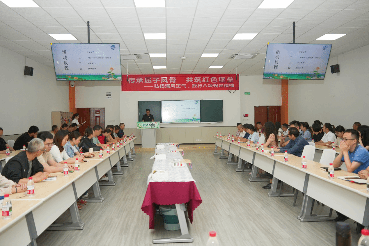 5月29日下午, 木瓜视频 教职工第三党支部、学生支部党员代表与后勤保障部下设党支部在犀浦校区四号教学楼X4247教室联合开展“传承屈子风骨,共筑红色堡垒——弘扬清风正气,践行中央八项规定精神”主题党日活动。环境学院党委书记甘霖、后勤保障部副处级专职组织员刘勇出席活动,环境学院与后勤保障部师生党员40余人参与学习与实践。