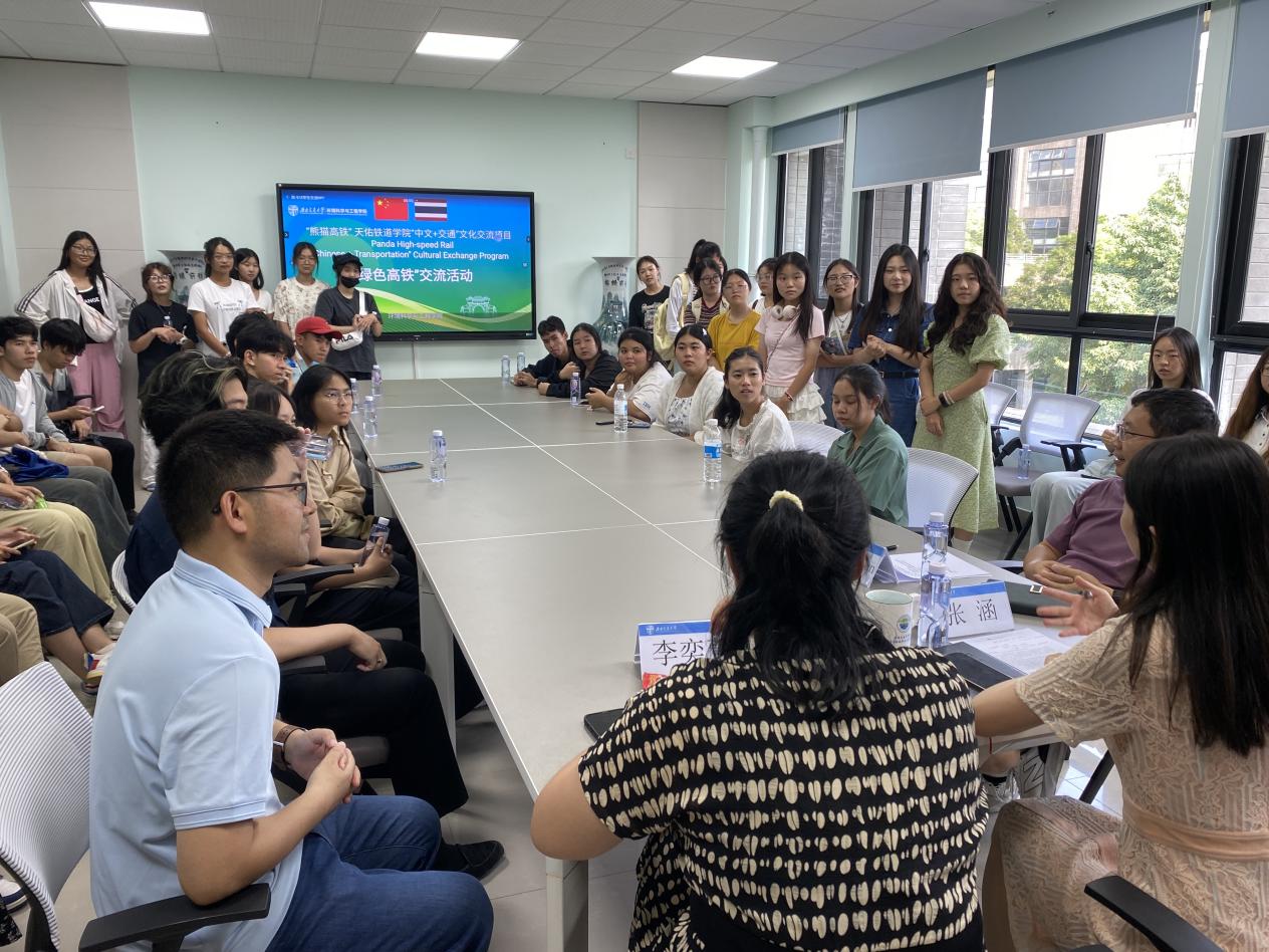 张涵向泰国学生介绍了学院在绿色交通领域的研究成果和实践经验,强调了环境保护在高铁建设中的重要性;范美坤分享了学院的教学理念和人才培养模式,鼓励学生们积极探索和创新;李奕萱详细介绍了“熊猫高铁”项目及木瓜视频