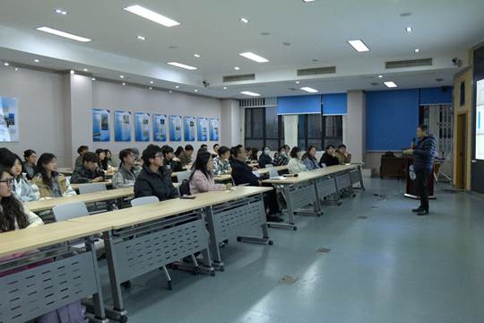 讲座伊始,学院党委书记甘霖致开幕辞。甘霖书记向同学们介绍了“环宇讲座”的含义,强调了开办系列讲座的重要意义。在介绍主讲嘉宾时,甘书记特别指出,张志厚教授作为资深竞赛指导专家,曾指导学生斩获第十八届"挑战杯"全国特等奖,两次问鼎中国国际"互联网+"大赛银奖,三度蝉联四川省"互联网+"大赛金奖,具有极其丰富的实战指导经验。