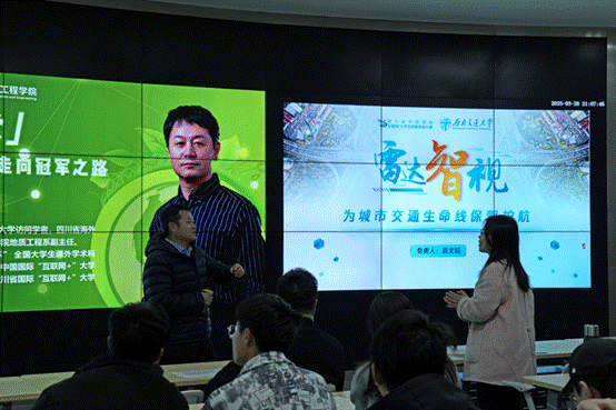 在“互联网+”大学生创新创业大赛中的特等奖获奖项目“雷达智视——为城市交通生命线保驾护航”为案例,生动还原了从团队组建、技术攻坚到成果转化的完整历程。张教授强调跨学科组队和“硬件+软件”组合的重要性,同时还提出了“以赛助教,以赛助学”的观点,指出比赛需要老师与学生相互成就。