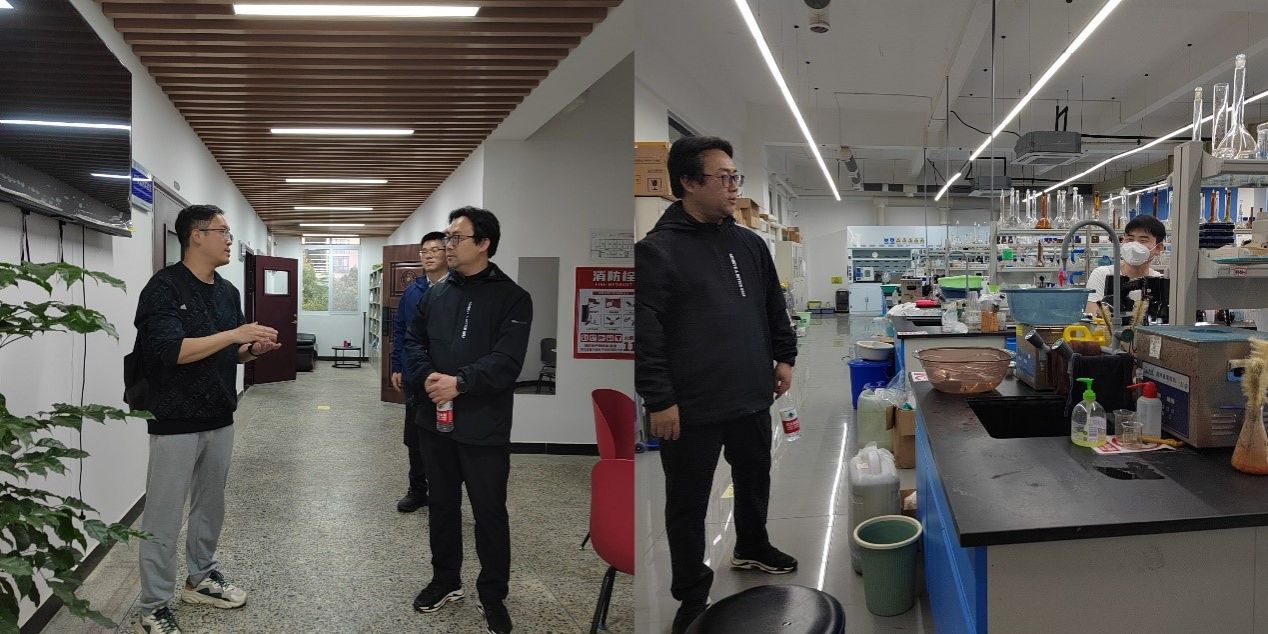 4月, 木瓜视频 党委书记甘霖,党委副书记胡安辉一行走访环境科学与工程实验中心,走访中主要检查了实验室设施设备、安全管理及运行效能,了解了实验室对教学科研的基础支撑作用。