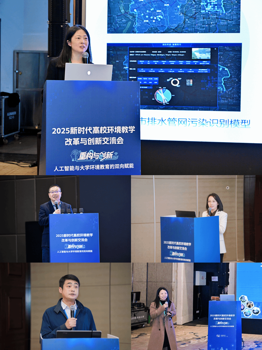 张涵教授作《“双碳”背景下水污染控制工程课程建设探索》主题报告;范美坤教授作《大型语言模型在“环境化学”教学中的应用初探》主题报告;王东梅老师作《数字赋能“固体废物处理与处置实验”课程教学资源的建设与实践》主题报告;彭道平老师作《生态环境分区管控融入“环境规划与管理”课程的教改探索》主题报告;苏凯老师作《木瓜视频