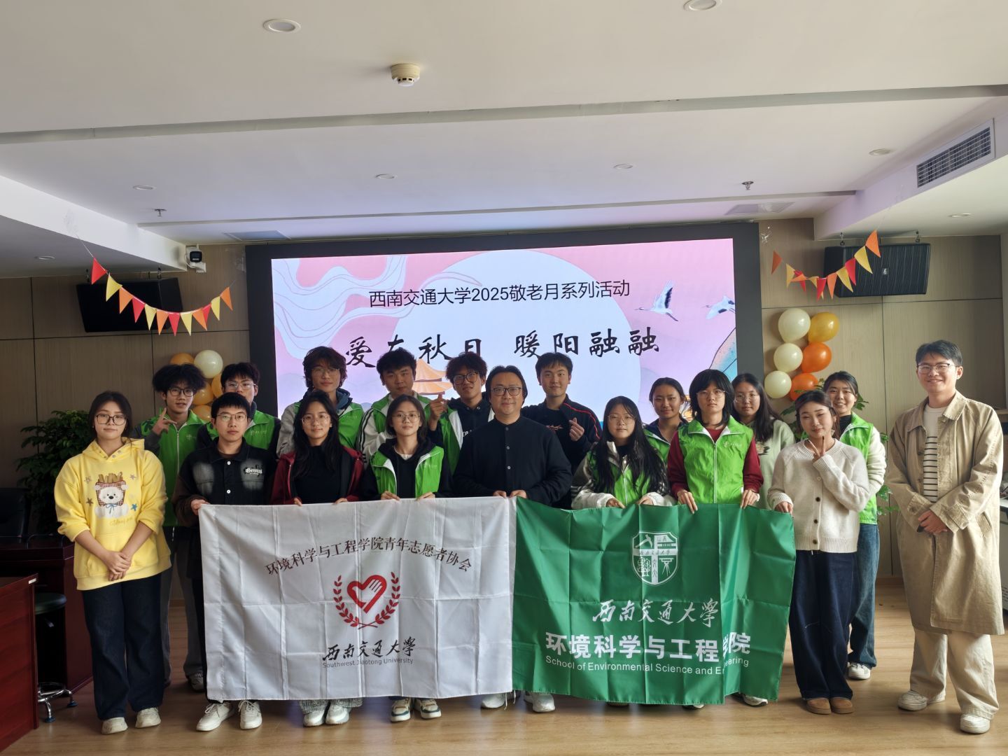 青年志愿者协会承办的第二期“爱在秋日,暖阳融融”敬老月主题活动在犀浦校区老年活动中心顺利开展。通过文艺演出、互动游戏、传统手作等形式,为退休老教师送上诚挚祝福与青春陪伴,弘扬尊师重道传统,传承交大精神。