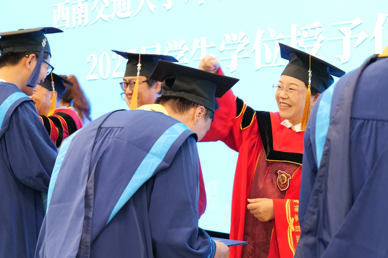 全体参会领导老师来到台前,为本科、硕士毕业生颁发学位证书,拨穗正冠,并合影留念。