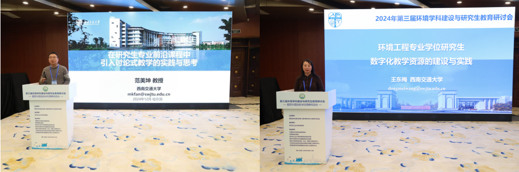 在“AI赋能环境类研究生课程建设”分论坛上,范美坤老师和王东梅老师分别以“在研究生专业前沿课程中引入讨论式教学的实践与思考”、“环境类专业研究生数字化教学资源的建设与实践”做了报告。