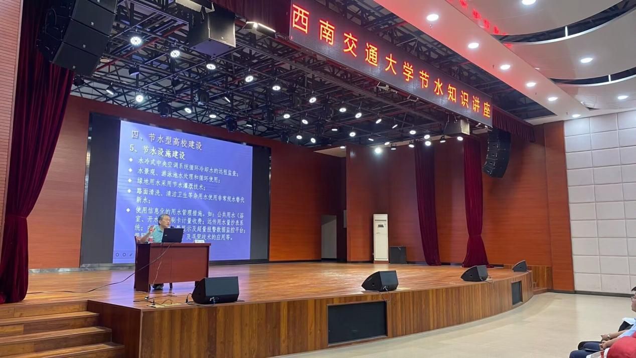 节水知识讲座”,活动邀请了成都市节约用水监管事务中心、四级调研员严江老师为学校师生讲解节水知识,充分增强了师生合理利用水资源的意识。同学们纷纷表示,今后要敢于对身边的浪费现象说“不”,发现宿舍园区滴、渗、漏现象时不应忽视,要及时报后勤保障部进行维修,同时积极践行“一水多用”,做到不浪费每一滴水!