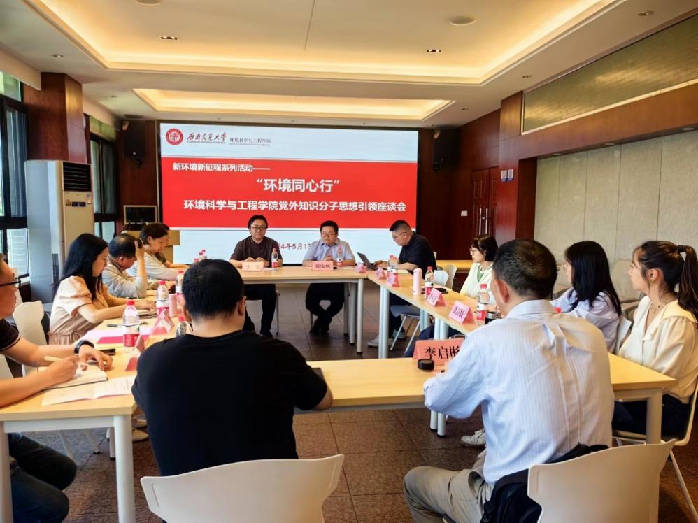 在4520会议室开展“环境同心行”党外教师座谈会。院党委书记甘霖,院党委副书记胡安辉,农工党成都市委常委、学院副院长赵锐,学院各科室主任和学院民主党派、群众代表参加会议。座谈会由胡安辉主持。