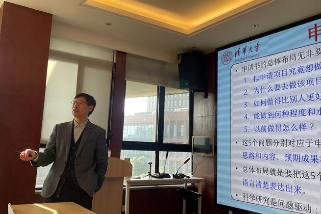 朱永法教授从多年的科研经历和基金项目申报经验出发,围绕四个方面展开详细讲解:一是国家自然科学基金申请书的布局与提纲;二是申请书编写与完善的关键环节;三是基金项目评审过程中的核心关注点;四是基金委人才项目申报的特点和注意事项。通过详实的案例分析与生动的讲解,朱教授为在场教师提供了宝贵的指导建议,现场气氛热烈。