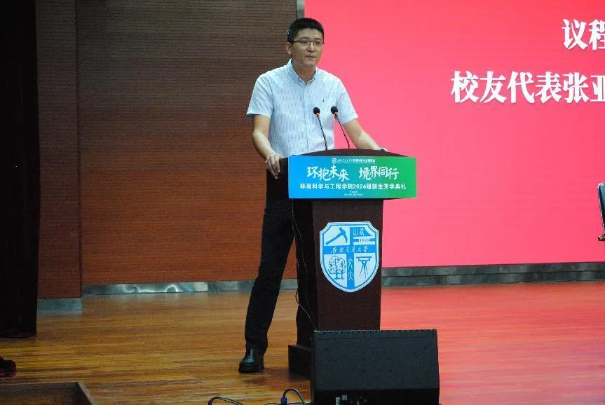 张亚会作为校友代表主要从学习和工作的经历出发,真切的讲述自己在校的学习经历和经验,作为学长,他嘱咐新生要珍惜大学时光,做好生涯规划,明确自身定位,勇敢面对挑战,不断学习和成长。