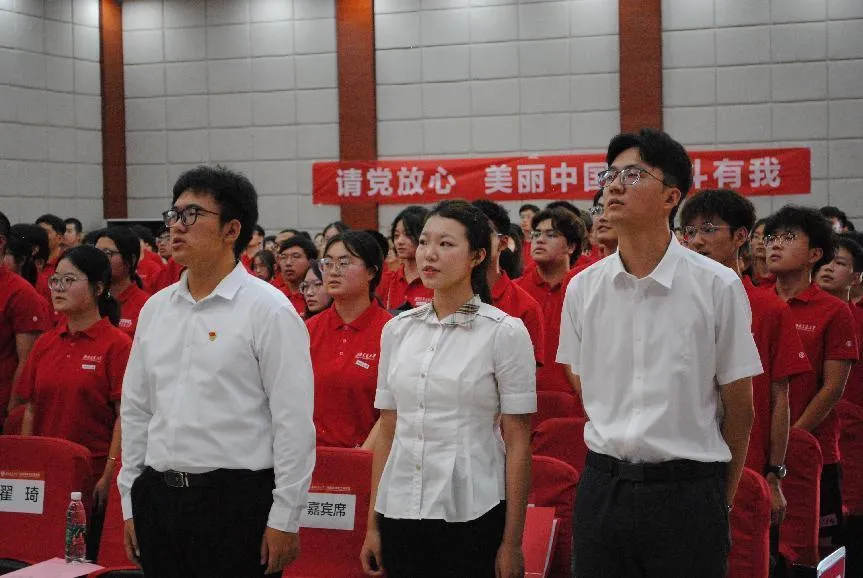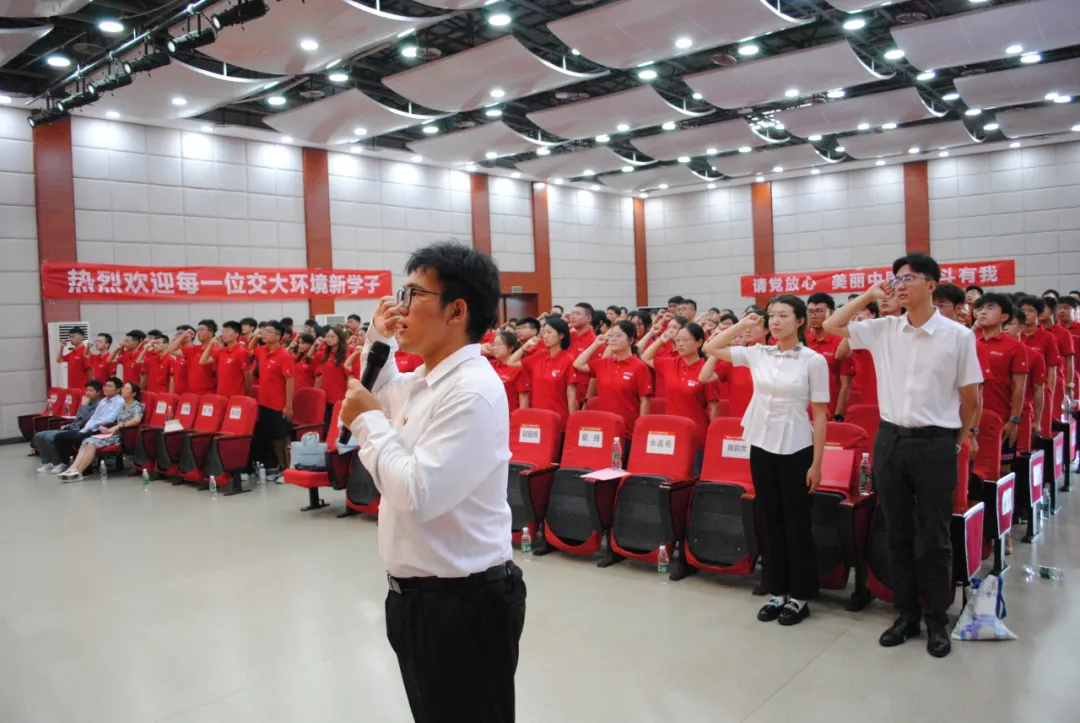 最后,由环境学院学生会主席向祎斐同学带领全体同学宣誓。勤奋学习,锐意进取。新生们用铿锵有力的誓词展现了他们投身美丽中国建设的决心和担当。