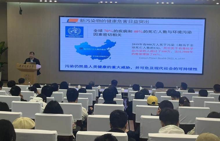 蔡宗苇教授的讲座聚焦于新污染物的质谱化学分析检测技术。他指出,新污染物因其多样性和复杂性,对传统检测方法提出了巨大挑战。蔡教授介绍了质谱技术在新污染物检测中的应用,尤其是在低浓度、复杂基质样品中的高效识别和定量分析方面的突破。他详细讲解了几种创新性分析方法,包括高分辨质谱和非靶标筛查技术的应用,为师生展示了新污染物质谱检测的最新进展。