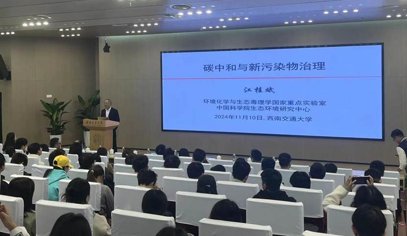 江桂斌院士一行四位专家的讲座不仅为师生们提供了关于碳中和与新污染物控制的专业知识,也传递了对环境保护的深切关怀,激发了广大交大学子对环保事业的热情。聆听讲座的许多学生纷纷表示,江院士和几位专家的分享令他们深受启发,对环境问题有了更深刻的认识,也更加坚定了投身绿色发展事业的决心。此次系列讲座反响热烈,不仅丰富了师生们的环保知识,也为校园营造了浓厚的环保氛围。