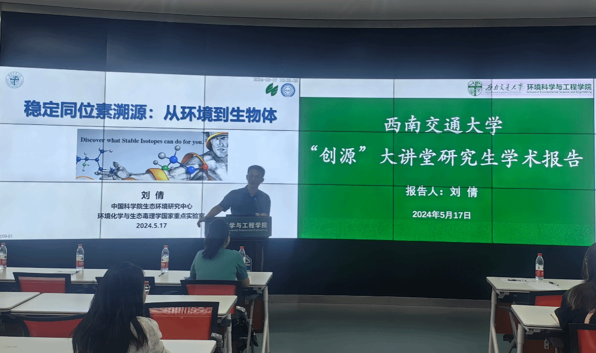 ,在犀浦校区X4243作题为“稳定同位素溯源:从环境到生物体”的学术报告。本次报告由龚正君院长主持,学院骨干老师、研究生和本科生参加本次报告会。