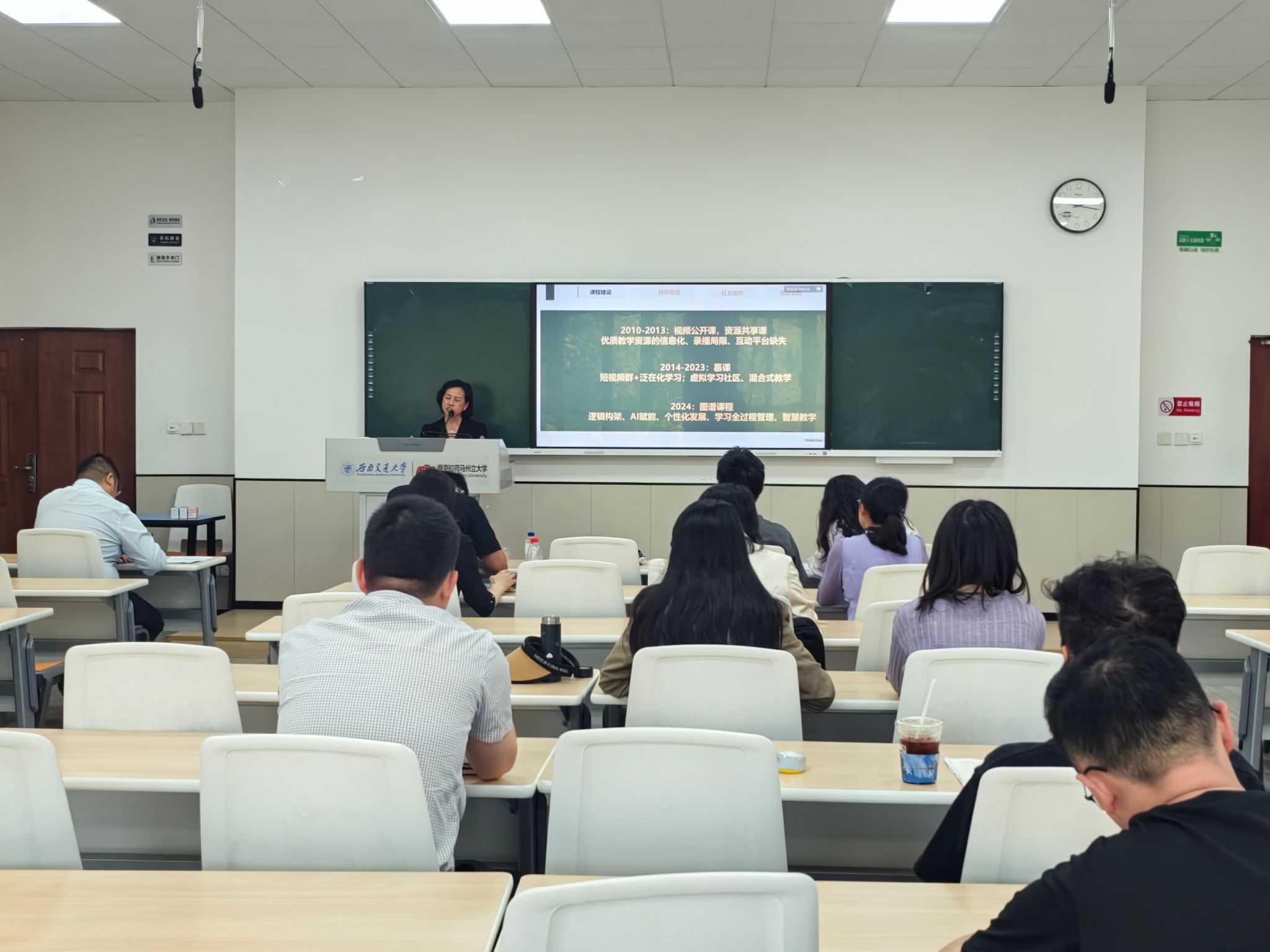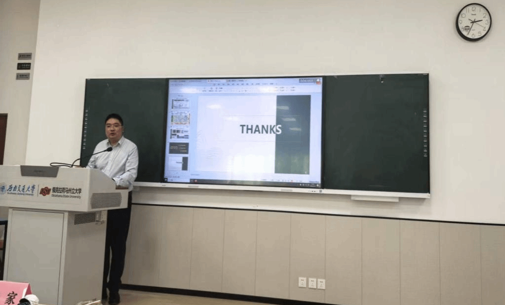 作为首场主讲嘉宾,外国语学院李成坚教授以《一位高校教师的成长之路:从跟随到引领》为题,从课程建设、教研融合、社会服务、思政领航四个维度开展分享。她提出,高校教师的成长需突破跟随者思维,在教学实践中构建引领者格局。李成坚教授深情诠释了教师的“情怀与担当”,特别强调党建引领是教学创新的根本方向,将思政元素有机融入专业教学,体现“跨文化传播”的时代使命;探索“产教融合新范式”,将语言教学与地方文化传播、产业需求紧密结合,形成示范推广效应;提出以“三星堆”“熊猫文化”等四川特色文化IP为载体,打造兼具中国气派与交大特色的跨文化通识课程,培养“会讲中国故事”的国际化人才。