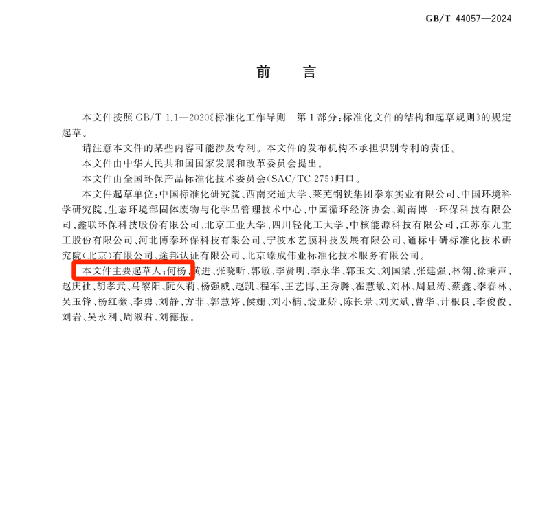 作为起草单位之一,环境科学与实验中心何杨副主任等作为主要起草人之一参与了上述国标的编制。