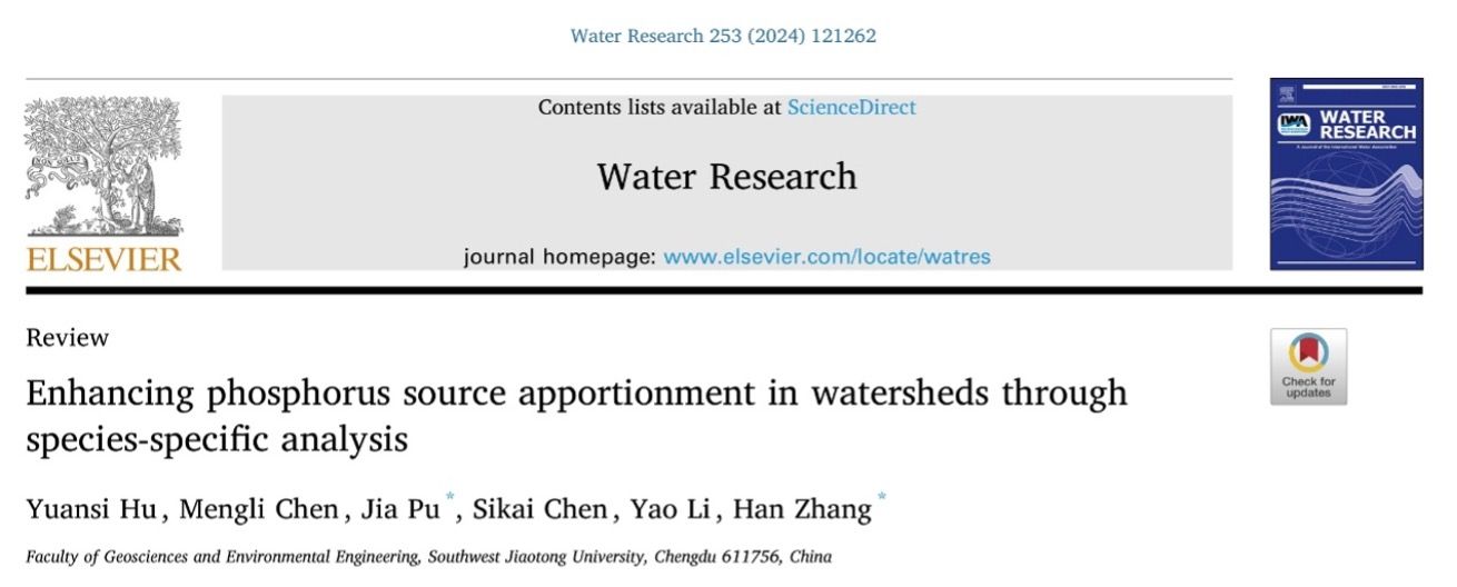 论文详细信息:Yuansi Hu, Mengli Chen, Jia Pu*, Sikai Chen, Yao Li, Han Zhang* (2024) Enhancing Phosphorus Source Apportionment in Watersheds through Species-Specific Analysis. Water Research 253, 121262.