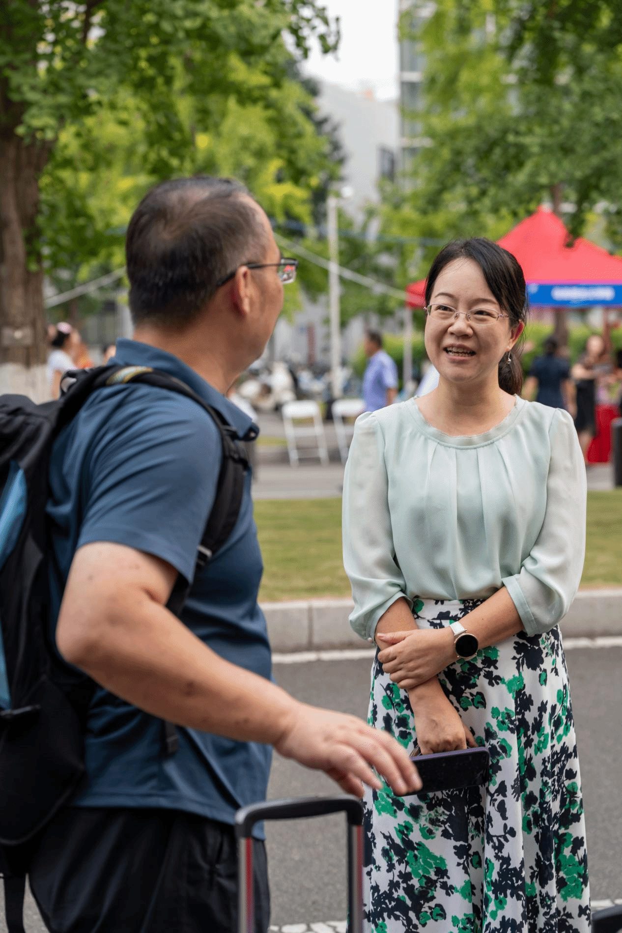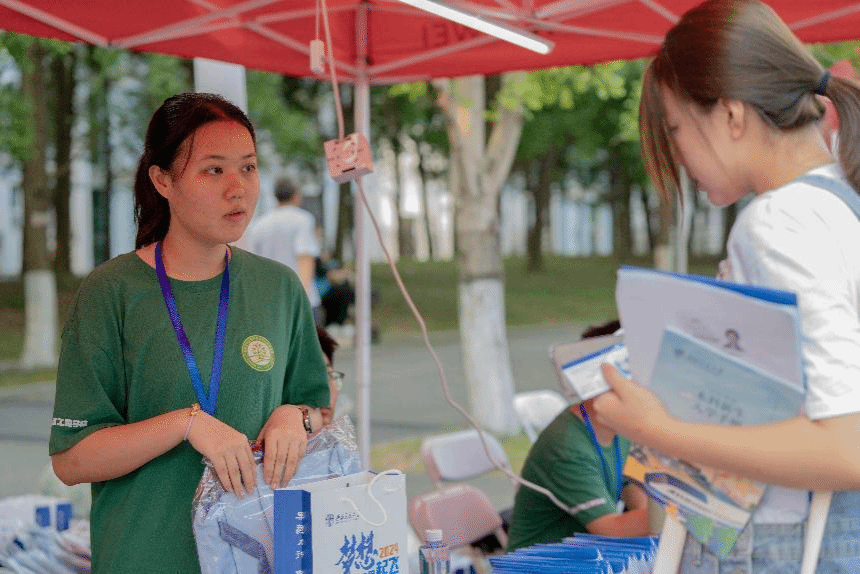 炎炎夏日也亲自来到迎新点为新生和家长们答疑解惑