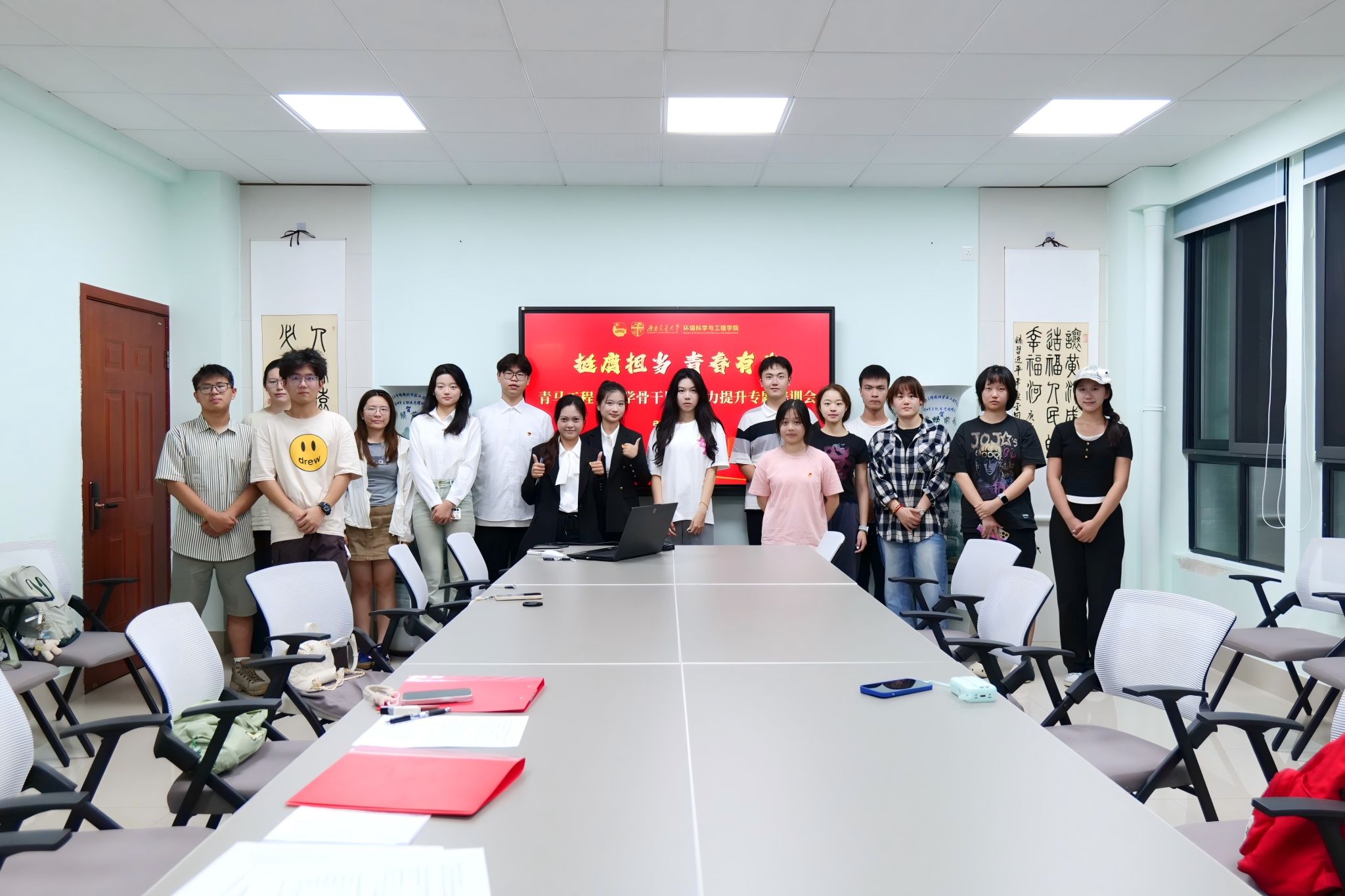 为引领环境学生骨干成长为“有理想、敢担当、能吃苦、肯奋斗”的新时代青年,9月16日,环境学院“青马工程”团学骨干工作交流暨履职能力提升专题培训会在X4348会议室召开。学院党委书记甘霖、团委书记翟琦,辅导员赵瑞涵、黄泳桦、曾祥珂及学院团学骨干、社团负责人参会,会议由赵瑞涵主持。