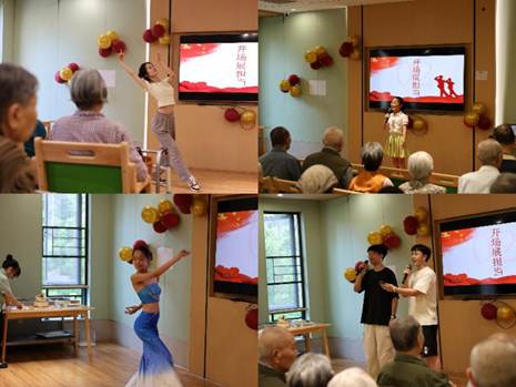 活动伊始,适逢十余位老人的集体生日会,团队成员与老人们齐唱生日歌,送上真挚祝福。随后,康养中心院长讲话,向老兵和长者们致以节日问候,并对实践团队的到来表示热烈欢迎和感谢。