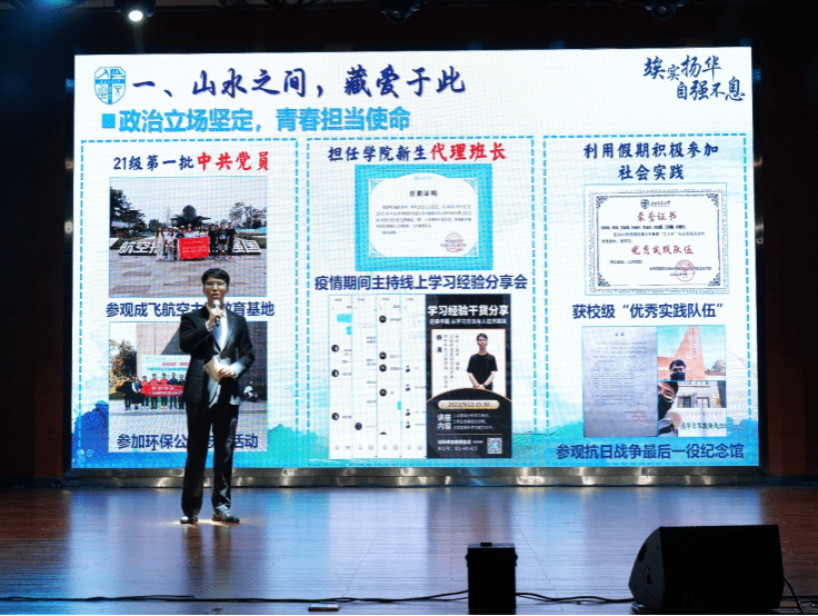 首先,杨涛分享了选择环境专业的初心与成长故事,因为家乡的污染问题立志成为一名绿水青山“守护者”,怀揣着对环境的热爱,精勤求学,砥志研思,三年第一是初心坚守,三度国奖是矢志不渝;投身科研,辛勤耕耘,专利与论文两手抓,竞赛与项目相兼顾。他勉励大家不断进取,以矢志奋斗为笔,绘美丽中国画卷。