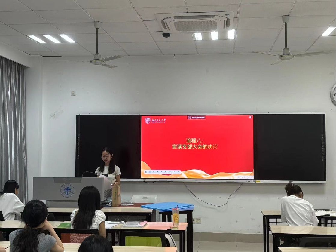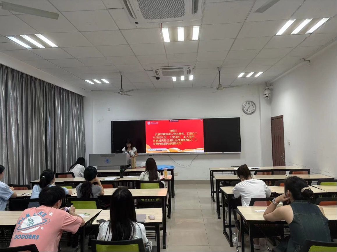 首先,由发展对象宣读《入党志愿书》,汇报对党的认识、入党动机、本人履历、现实表现以及应向党组织说明的其他问题。在听完其汇报后,由两位入党介绍人介绍申请人的情况,表明是否同意发展其入党的意见。随后,支委会成员冯媛橼同志向支部大会汇报入党申请人的培养教育考察和政审情况,并由党员向发展对象提出问题,对其能否入党进行考核。接着,11位有表决权的正式党员对发展对象进行无记名投票,对其能否入党进行表决。