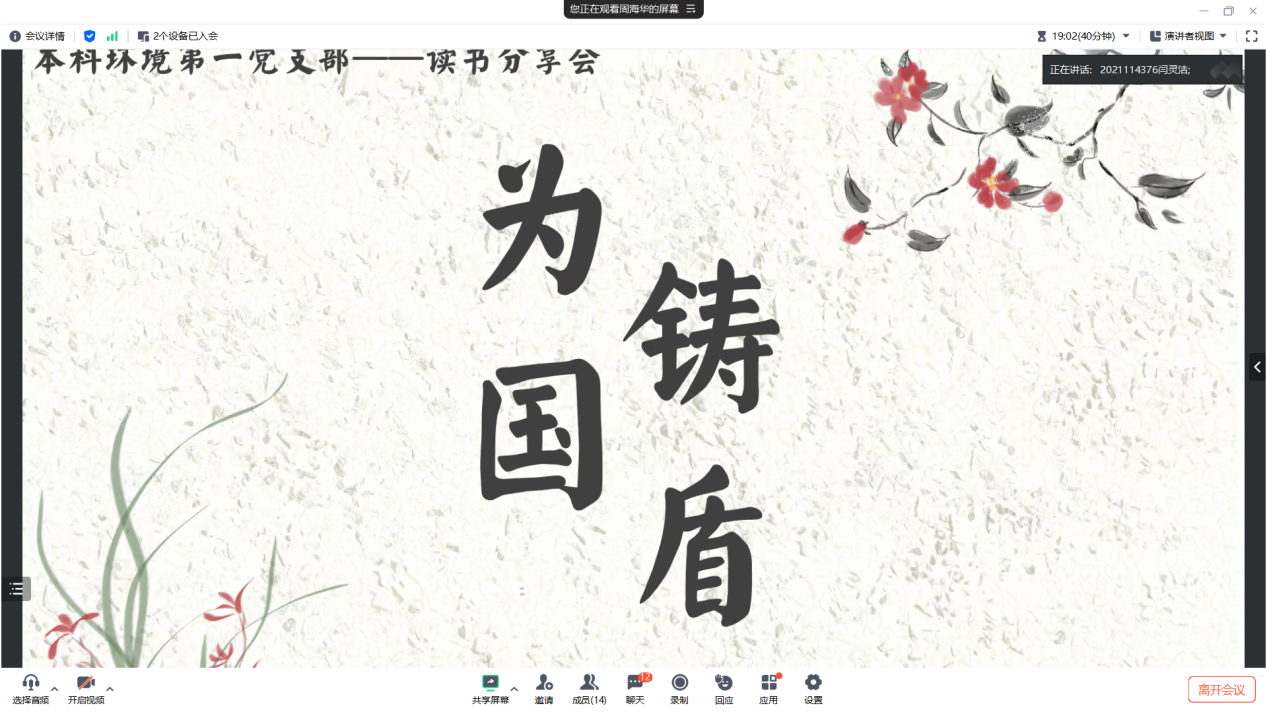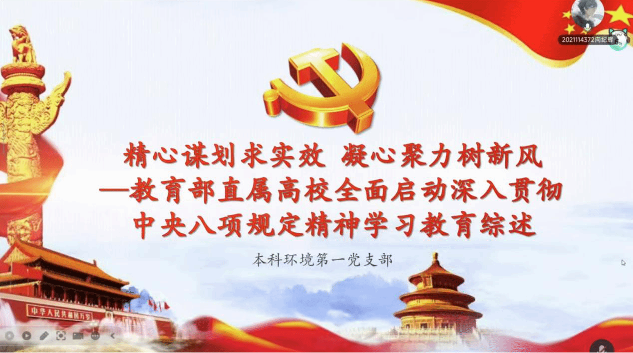20255151900本科环境第一党支部在线上开展读书分享会和5月党日活动本次党日活动的主题为学习中央八项规定。本次活动由党支部书记闫灵洁同志主持并领学。