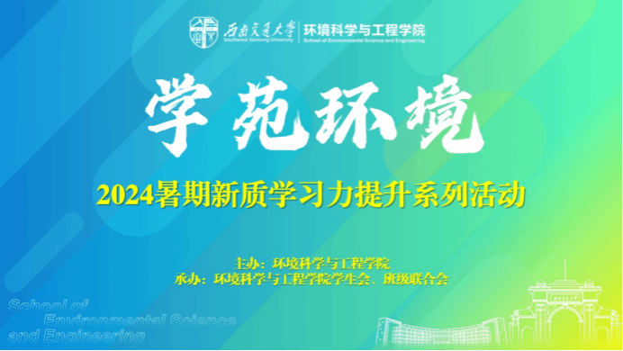 开展2024暑期新质学习力提升系列活动,旨在鼓励环境学子充分利用假期的宝贵时间,劳逸结合,夯实基础,强化能力,有效激发同学们的学习动力和自律性,促进良好学习习惯的养成。本次活动共组织了“考研打卡营”、“暑期英语提升训练营”、“暑期国际素养提升营”、“留学菁英营”、“学院暑期辅导提升班”、“院刊征文活动”等六项高质量学习内容。